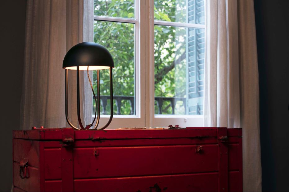 JELLYFISH es un set de lámparas de diseño creado por Nahtrang. Su nombre viene de su forma que recuerda a una medusa (jellyfish). Con un cabezal redondeado negro con el interior dorado y una estructura equilibrada y atractiva produce una luz perfecta para el hogar. Esta sobremesa es perfecta para salones modernos, dormitorios y espacio